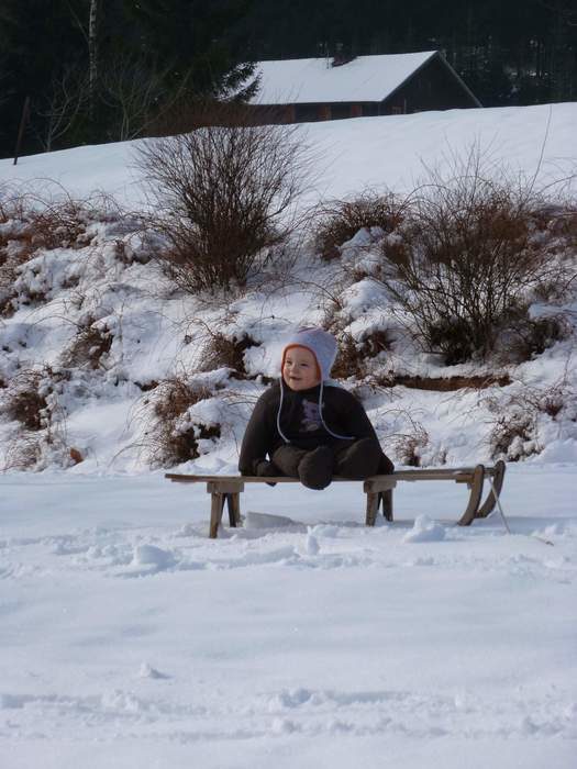 Na, das wurde aber auch Zeit: endlich Schnee! Und damit auch Gelegenheit für die erste Rutschpartie ...