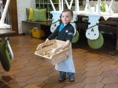 Auch beim Frühstücksbüffet helfe ich meinen Kolleginnen gerne beim Aufräumen. Oma und Jana freuen sich sehr darüber.