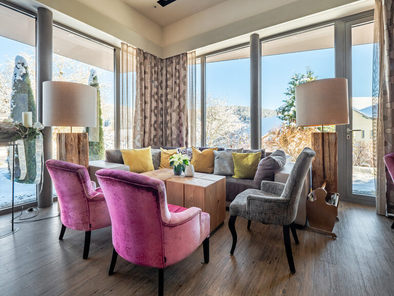 Die Panorama-Fenster laden ein zum Gedanken schweifen lassen, zum Zeit vergehen lassen und zum Träumen. Ein schöner Treffpunkt zum Ratschen oder zum Zeitung lesen.