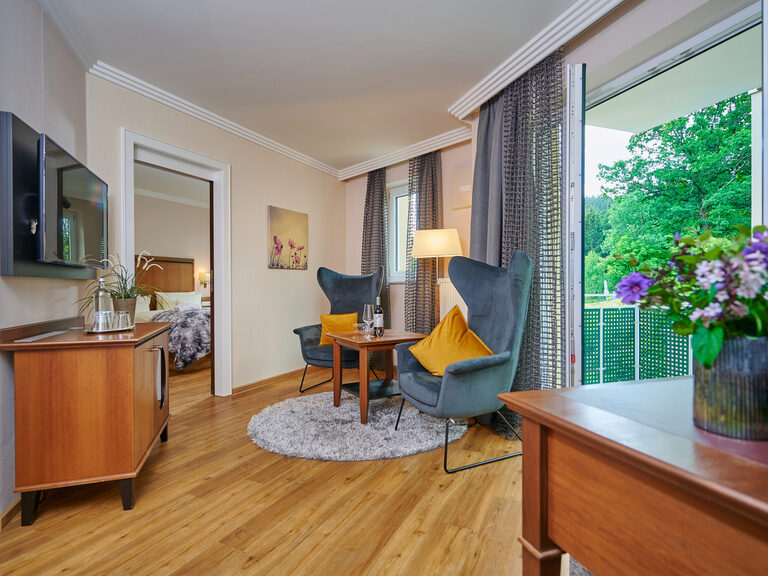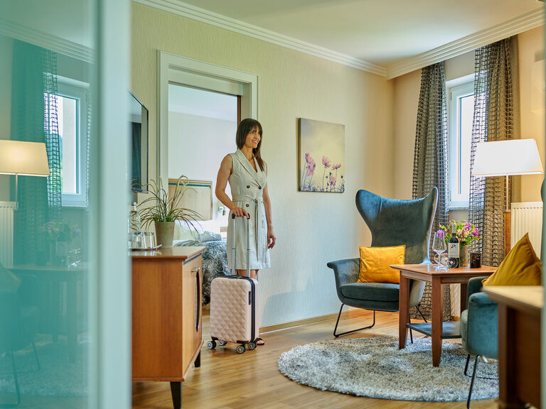 Exklusive Suite mit großzügigem Wohnbereich, zweitem Schlafzimmer und Whirlpoolwanne, ideal auch für 3 Erwachsene